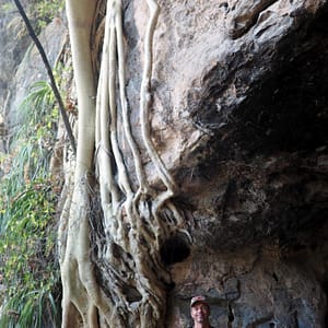 Z domu sa po čajíku a koláčikoch, ktoré sme si včera prefíkane nakúpili vyberieme ku stanici č. 1. Berie nás minibus – vyhliadková jazda. Zbierame pasažierov opačným smerom – strmými uličkami a prašnými cestami. Auto ku jaskyni ide až o 45 minút, tak si nakúpime proviant. Džúsik s kaktusmi, banány a pivo Corona v lekárni za lepšiu cenu ako v bežných obchodoch (Oxxo). U babky pred stanicou si objednáme dve quesadilly s cecinou – tenký hovädzí rezník na grile. A už je tu náš spoj. Trošku sa vyplašíme ale ideme mu povedať, že čakáme ešte na babku a jej jedlo. Minibus nás naloží, k tomu ešte jednu tehošku a ani nečaká, že by sa zaplnil. Fujazdíme zatáčkami s otvorenými dverami a okienkami. Vonku pečie slnko, no vo vnútri je príjemne. Po skoro hodine sme za 80Pesos vyhodení pred jaskyňou. Kupujeme lístky (2×80) a akurát vpúšťajú dnu na 13:00.
