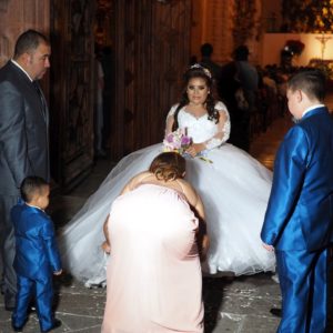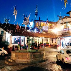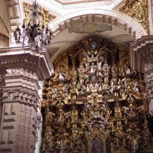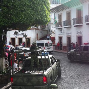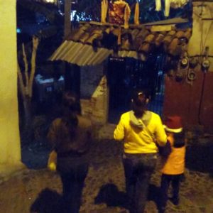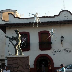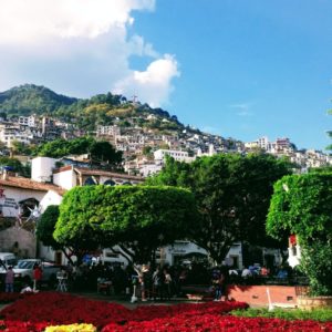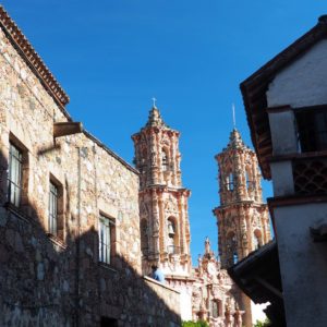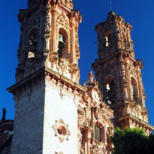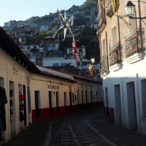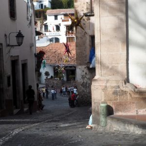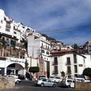 Barokový kostol Santa Prisca je magický a je tu veľa sprievodcov ponúkajúcich svoje služby. Bielych turistov tu prakticky nevidíme. Pochutíme si na kukurici na paličke omastenej maslom, ocitrónovanej a pokorenenej čili. Potom si ešte dáme zopár vegetariánsky picadil – tortičkovité slané koláče. Kým čakáme na jedlo ku K si prisadnú turisti, čo s nami prileteli do Mexika. A motáme sa mestečkom. Taxco je známe striebornými výrobkami ale my máme dosť zlý pocit z čínsky vyzerajúcich kôp nezaujímavého a drahého striebra. Hlavné námestíčko je dosť malé a plné ľudí. Všade mrte domorodých turistov z mesta.