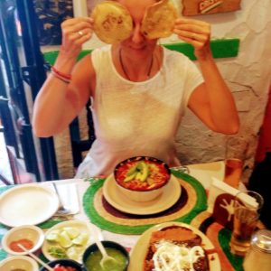 Ideme aj do obchodu, kde sme videli zaujímavé veci posledne, vytipujeme si kopu vecí ale nemáme peniaze a sme hladní. Tak ideme riešiť priority. Zadelíme si zase raz v Santa Fe mega pozuelo a lahodné enčilády. Hneď oproti cez námestie nájdeme nové strieborníctvo a minieme tam posledné Pesos. Prepchatí sa guľkáme z bankomatu do bankomatu, ktorý nám bude ochotný dať peniaze. Objavíme aj obchod s retiazkami a dáme si na mieru nahradiť všetky šnúrky na krkoch za strieborné retiazky. Dáme si bojovú poradu v kaviarni a ideme nakúpiť drahé dizajnérske striebro. Mimochodom, trójska unca striebra dnes stojí pod $17 a je to cez 30g.