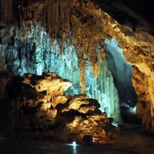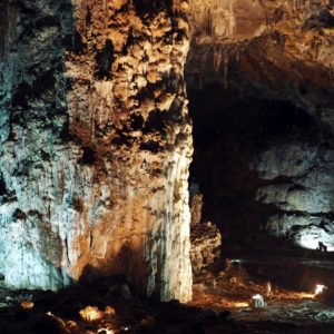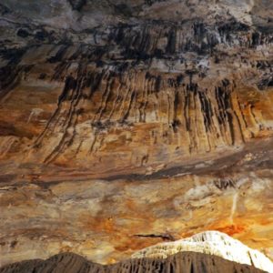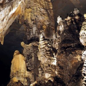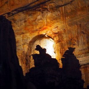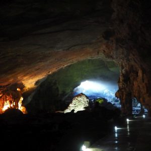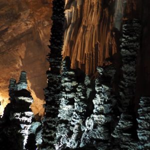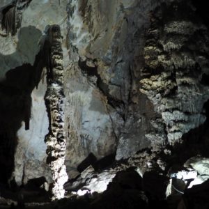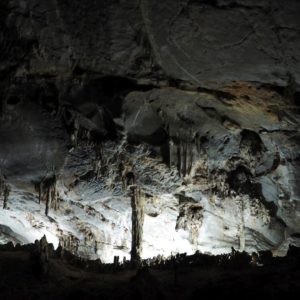 Vo vnútri je to naozaj veliké. Všetky sály sú nesmierne priestranné s neuveriteľnými formáciami. Celkovo sú sprístupnené 2 kilometre. Sprievodca zapína a vypína svetlá ako ideme. Má lejzrové ukazovátko a veľký lampáš, ktorý si na miestach výkladu zapicháva do pripravenej predlžovačky. Na kilometri 1.2 je dokonca WC. To sme v jaskyni tiež ešte nevideli. Pozeráme na to všetko ako puci, je to tu naozaj krásne, neklaustrofobické a celkom vkusne nasvietené. Nie ako kasíno vo Vietname. Ani rozsahom sme niečo tak gigantické ešte nevideli. A ku koncu, keď začnú pribúdať stúpania a schody máme celkom aj dosť. Je to, povedal by som až príliš veľké. Pri poslednej formácii si dedko vypýta sprepitné a vyšikuje nás obchádzkou po vlastnej osi naspäť. Bez svetla. Občas stretneme skupinu v protismere, tak tí nám prisvietia, inak uháňame 2km naspäť tmou. Aj sa dlhším šlapaním celkom zahrejme, inak je tu príma klíma.