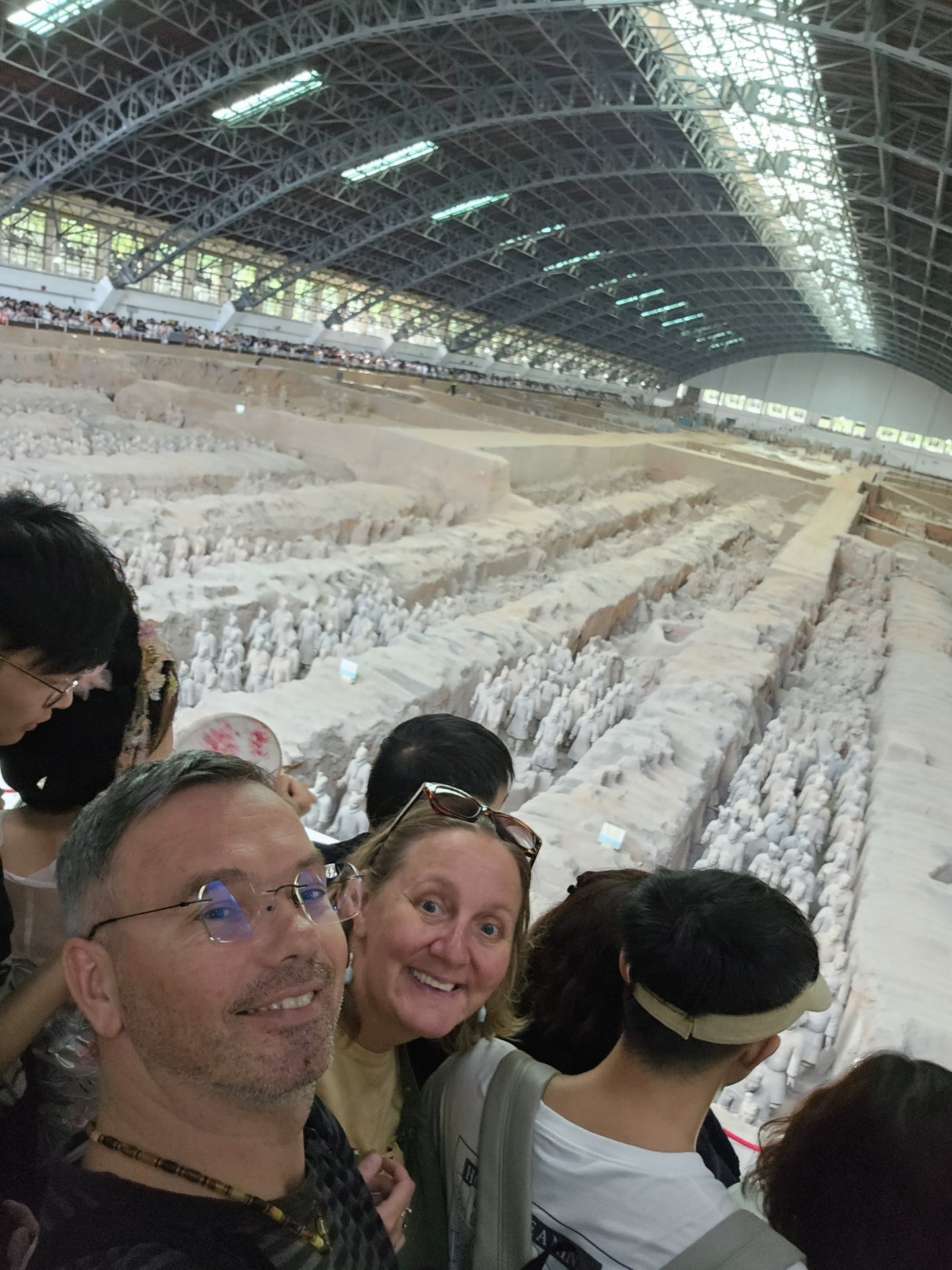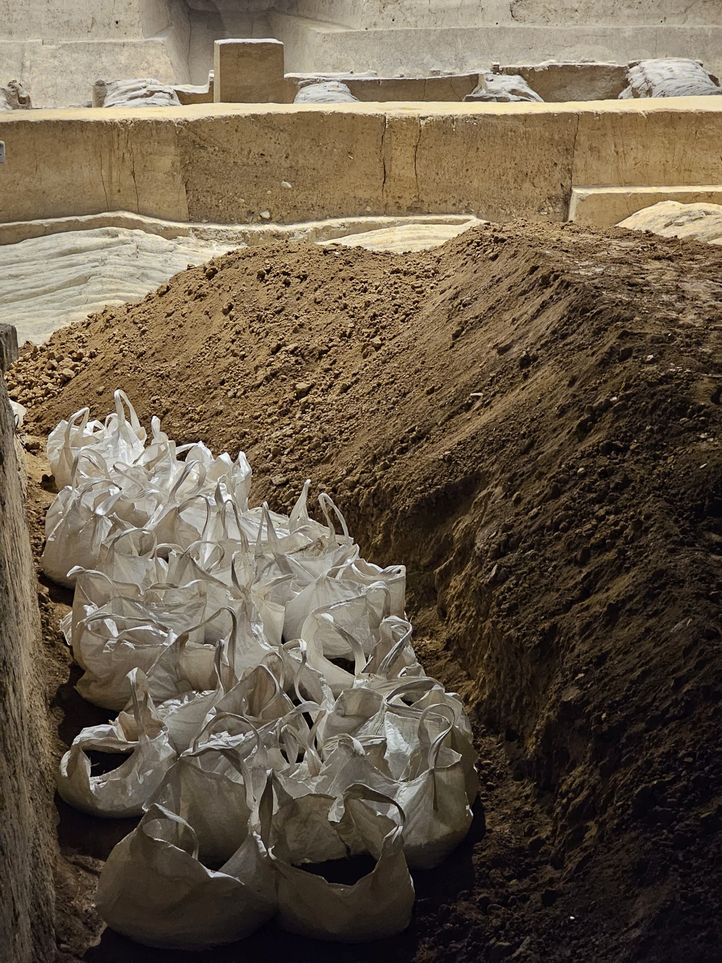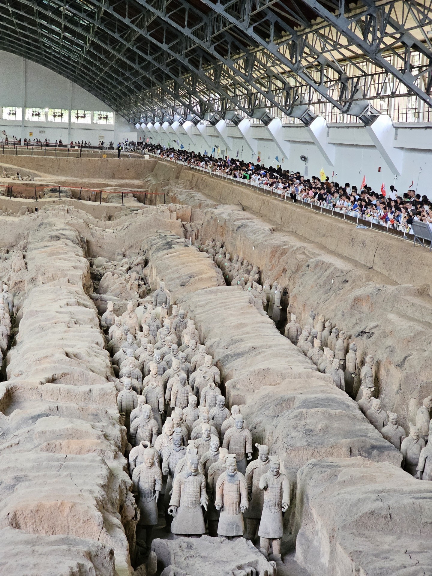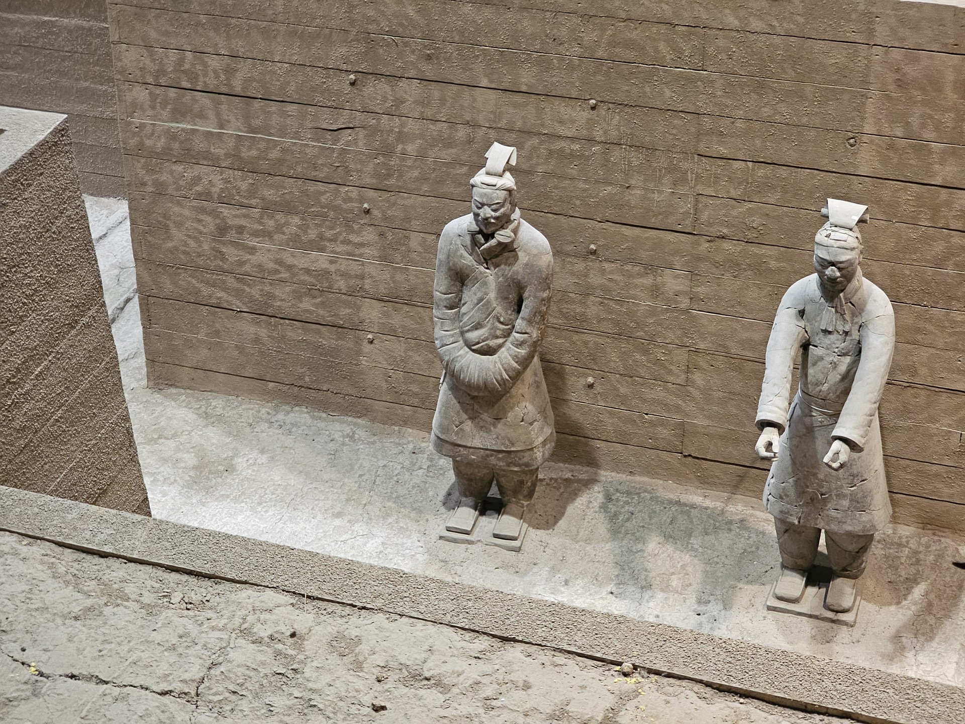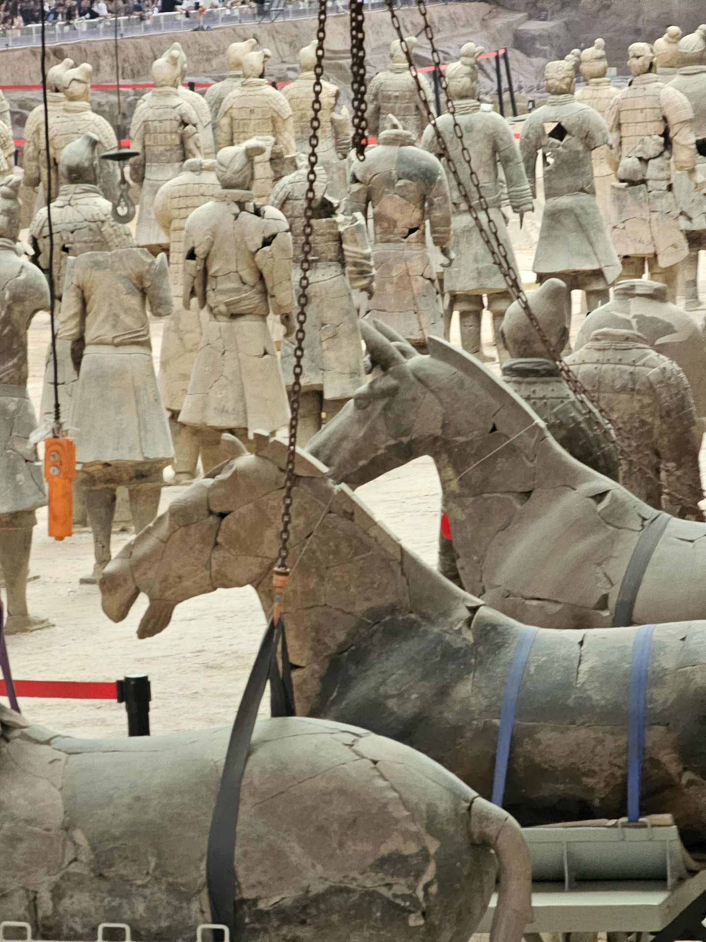 Všetko nasvedčuje tomu, že vykopali veľkú jamu, tam naskladali do radov armádu vojakov z hliny v životnej veľkosti a potom tie rady oddelené múrmi pozakrývali a zasypali. V oblasti je aj hrobka panovníka Qin Shi Huang (prvý cisár a zjednotiteľ Číny), o ktorej je mnoho dokumentov, ako napríklad, že je naplnená ortuťou, no o armáde nie je nikde žiadna zmienka. Asi to malo byť tajné. Armádu náhodou vykopal roľník v 1974 pri kopaní studne. Hrobka panovníka doteraz nie je otvorená, čakajú, kým sa ortuť nadobro vyparí.