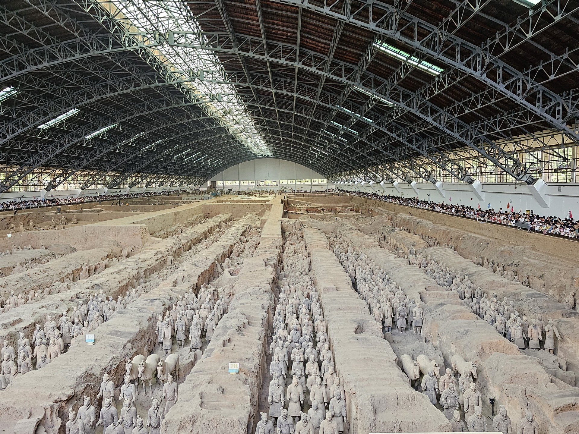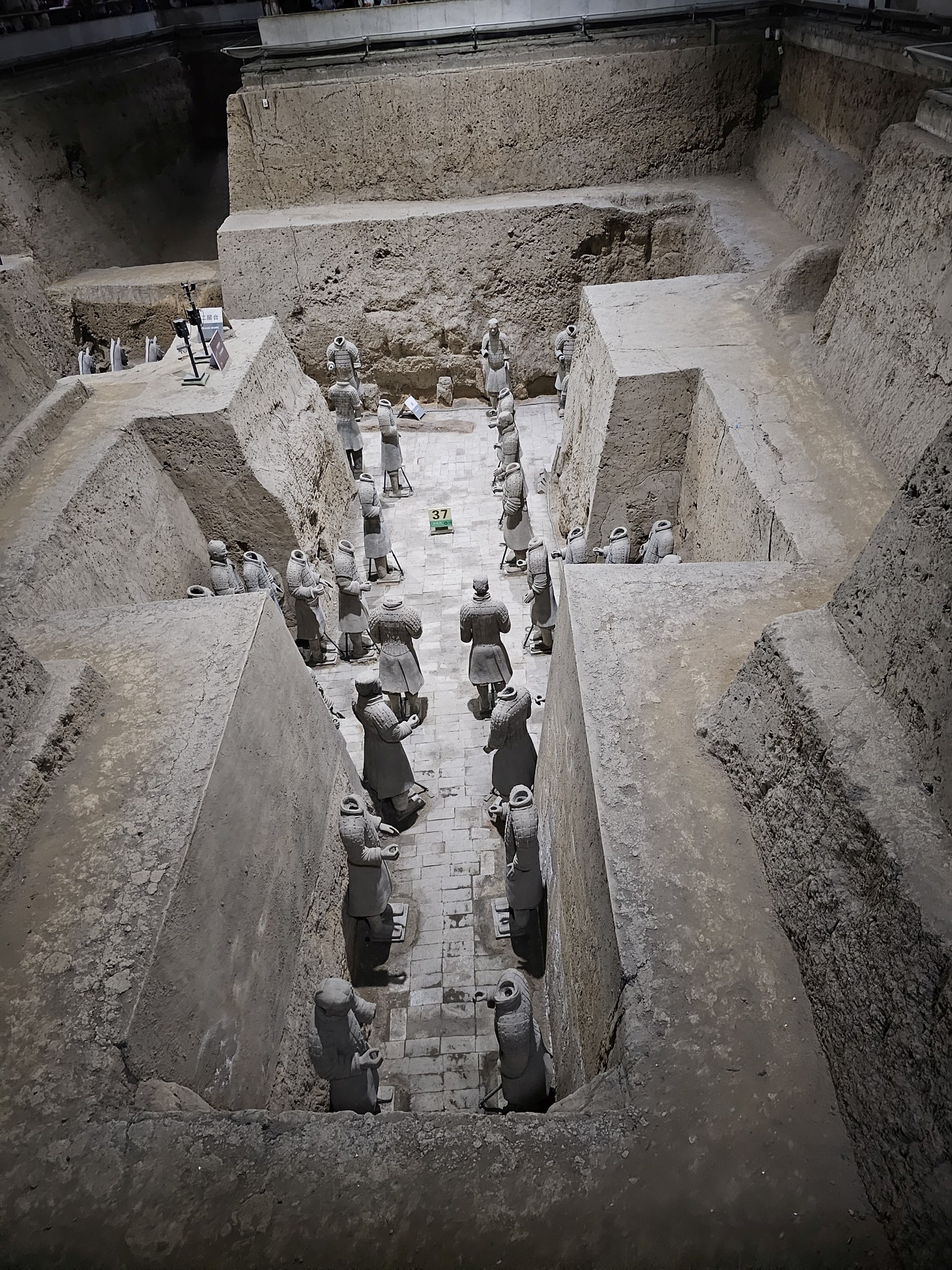 Vo vnútri je celkom masaker – hradba ľudí obkolesuje akékoľvek miesto pri zábradlí s výhľadom. Človek sa musí predierať cez 10 ľudí hrubú vrstvu a potom ešte čakať, kým sa tí na zábradlí dofotia a bleskurýchle sa po nich nacapiť na zábradlie. Problémom je, že na to isté miesto sa vždy snažia dostať minimálne 3 skupinky ľudí. Je to doslovný boj o centimetre výhľadu do priekopy. A to ešte nevieme, čo nás čaká v 1ke. Priekopa č. 3 obsahuje dokopy 72 vojakov a koní. Na konci je miestnosť na fotenie sa pred imitáciou vojakov pre rodinky.