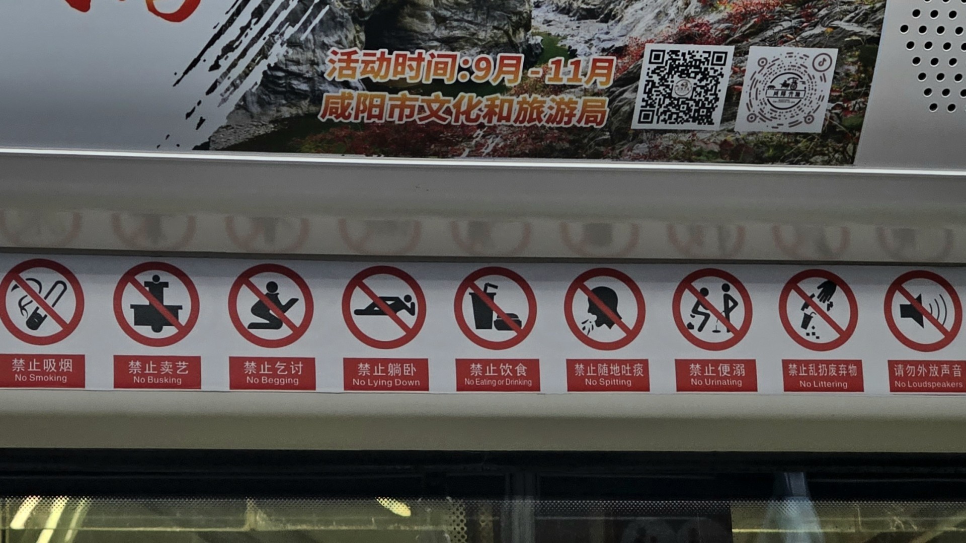 Môj sprievodca vo vlaku chce silou mocou skenovať akýkoľvek QR kód. Keď mu neviem žiaden vyprodukovať ani v čínskej verzii vlakovej appky vypýta si pas a skenuje japonské víza, lebo tie majú malinký QR kódik. Keď mu ani to nejde zoberie si môj pas a zmizne na asi polhodinu. Od K nikto nič nechcel.