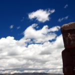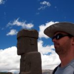 Urobí sa pekné počasie a z chodenia pomedzi skaly je pekná opekačka. Ešte že máme klobúky a dlhé rukávy. Po sedemposchodovej pyramíde vyobrazujúcej nadpozemský svet obzeráme chrám, ktorého brána vrhá tieň na monolity. Krajné monolity pri obratníkoch a stredný pri rovnodennostiach. Chrám je pozemským vyobrazením a do tretice je v zemi jama, ktorej steny sú lemované 277 lebkami. Toto symbolizuje podsvetie. To sa nám asi páči najviac. Preparkovaný minibus nás počká, kým nakúpime suveníry pri východe a pred obedom ešte ideme pozrieť najväčší monolit do múzea. Tam je ale ešte stále vypadnutá elektrika, tak si musíme chvíľu zvykať na tmu, aby sme 10 metrovú sochu s guľôčkovými nohavicami vôbec videli. Túto sochu mali nejaký čas vystavenú pod šírym nebom v La Paz(súdiac podľa dobových fotiek po stenách haly), ale zrejme ju riadne osmogovalo, tak jej postavili dedikovanú budovu a previezli ju naspäť na rodnú hrudu.