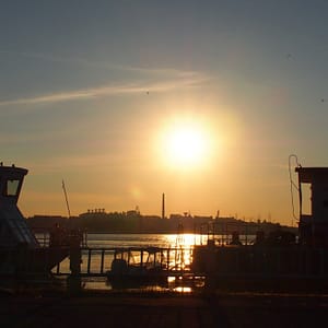 Ráno nás už budí slniečko teplom rozohriateho auta. Nejaký pánko sa motá okolo svojho auta zaparkovaného vedľa nás. To začne na naše prekvapenie zvesela umývať, nám sa vynoria spomienky z detstva. Vyrazíme dúfajúc, že nedostane infarkt a neutopí sa v kýbli. Po jednej zákrutke a odbočke zahlási navigoška, že máme nastúpiť na trajekt. No pekne. Vchádzame na parkovisko na brehu Dunaja posiate taxíkmi. Katka vyskočí do búdky kúpiť lístok a ja sa pomaly šuchcem na loďku. Za nami sú už len dva kamióny a vyrážame. Perfektné časovanie.