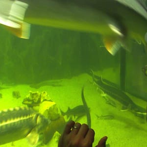 Turistické info bolo včera už zavreté, keď sme ho konečne našli a pani čo odchytávala ľudí pred ním sa nám zdala pridrahá, tak sme tam dnes rovno vyrazili. Je škaredé usmoklené počasie, tak keď obdržíme všetko info čo sme mohli, zapadneme do kaviarne na kávu s croissantom. Prečkáme tam aj seriózny dážď pri jednom jedinom pivku a ideme si pozrieť akvárko. Je to celkom fajn, ozrutné jesetery, štuky a sumce sa na nás ceria spoza skla. Na poschodí sú aranžmá rôznych krajinných oblastí. Vonia to tam senom a je tam dosť teplo.