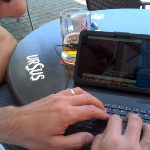 V Carpe Diem píšeme a pochutnávame si na šprotoch. Po obede zbehneme na plaváreň, že sa trošku rozcvičíme. Ideme okolo veľkého jazera. V strede strieka veliká fontána ako v Ženeve. Z brehu skáču veľké žaby a plávajú si spokojne vo vodičke. Podvečer začína byť fontánka vysvietená farebnými svetlami. Cestou späť z plavárne dopĺňame kalórie koštovaním špecialitiek a čapovaným pivom. Končíme zase v Carpe Diem, no všetko čo chceme je už vypredané. Majú riadne živo. Niečo sa ale predsa len nájde a ja mám výbornú tochituru, Katka mäsovú polievočku.