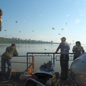 Ráno nás už budí slniečko teplom rozohriateho auta. Nejaký pánko sa motá okolo svojho auta zaparkovaného vedľa nás. To začne na naše prekvapenie zvesela umývať, nám sa vynoria spomienky z detstva. Vyrazíme dúfajúc, že nedostane infarkt a neutopí sa v kýbli. Po jednej zákrutke a odbočke zahlási navigoška, že máme nastúpiť na trajekt. No pekne. Vchádzame na parkovisko na brehu Dunaja posiate taxíkmi. Katka vyskočí do búdky kúpiť lístok a ja sa pomaly šuchcem na loďku. Za nami sú už len dva kamióny a vyrážame. Perfektné časovanie.