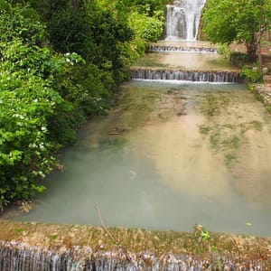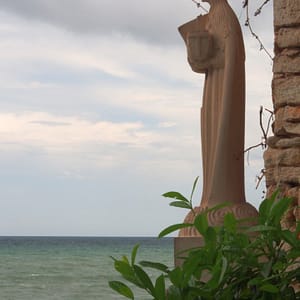 Kostol je malilinký, no má tam byť svätá liečivá voda. Prameniaca pred oltárom. Prameň nevidíme, no voda je prekvapivo nafľaškovaná ako hotelové šampóniky a každý pútnik si môže zobrať svoje poldeci. Kúpime sviečky a zoberieme si po fľaštičke. Vodu popíjame sledujúc ako horia naše sviečky. Z reprákov hrajú gregoriánske chorály a je tu veľmi pokojne. Na banneri píšu, že pokoj je v kontraste s dekadenciou hotelov navôkol, ale zrejme ešte nie je sezóna a-alebo rezort má najlepšie za sebou, lebo mimo kostola nie je oveľa rušnejšie.