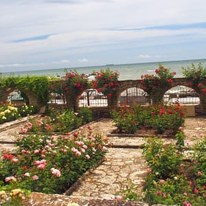 V noci riadne pršalo a mal som aj zimnicu. Ráno sračka vracia úder naplno. Dáme si banániky a čakáme, či môžeme vyraziť alebo nie. More je riadne rozbúrené, ale ani keby nebolo tak ho asi nedám. Je mi ako tak, tak vyrazíme, ale už cestou sa necítim najlepšie. V Balčiku si ideme pozrieť ružové záhrady rumunskej kráľovnej (tej istej ako v Brane) a vyrážam radšej nalačno. Vstupné do botanickej záhrady predávajú samostatne od vstupného do paláca. Chceme len záhradu, no musíme si kúpiť oba lístky. Haluz. V areáli záhrady sa zastavíme v reštike a tí hajzlíci nemajú toaletu. Som odkázaný na verejnú bez čohokoľvek (papiera, mydielka). Toto je naša prvá reštaurácia a prvý uzáver. Na rozdiel od Rumunska v Bulharsku draho vyzerajúce reštiky sú drahé. A táto ani nevyzerá moc draho. Vyzerá, že masový plážový turizmus vyštveral ceny bulharské cez tie rumunské. Ale však uvidíme inde. Dáme si opatrne len rybiu polievčičku a šalátik z grilovaným marinovaných paprík a syra. Vyrazíme do záhrad a trochu sa mi vráti energia. Je to najkrajšia ružová záhrada, akú sme kedy videli, a skoro všetky ruže kvitnú. Chodíme od kríka ku kríku, ovoniavame ich a nevieme sa toho nabažiť. Vrátime sa späť po inej úrovni – záhrady sú na svahu nad morom, všade sú tu z mora vysoké brehy a tu porobili terasy s rôznymi záhradkami. Naspodku sú ruže, na konci stromy a kríky. Prezrieme si palác z čias, keď Balčik ešte patril Rumunsku a ideme na vyššie úrovne, kde sú parkoidné záhrady s výhľadmi na more. Palác vyzerá lepšie ako Bran, no nie je taký monumentálny.