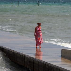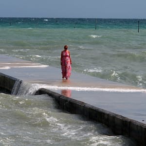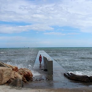 Vyrazíme do drobného mrholenia, že si pozrieme zvyšok pláže. Hneď pár krokov od nášho podniku – Rusalka – zbadám obláčik pary nad morom. Ideme sa tam pozrieť a K si spomenie, Že sú tu vlastne termálne pramene. Vidíme sprchy na brehu mora a kúsok ďalej je bazén z ktorého sa parí. Je v ňom pár ľudí i keď je už tma. Celé to vyzerá bezplatne. Zajtra by sme mohli dobehnúť sa trochu prehriať.