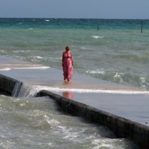 Po obede vyrazíme do prímorského parku. Cestou sa zastavíme v McDonalde, že niečo na zajedenie ku sektu. K naháňa obrazy z detstva. V Konstante si nič nevybavila, no tu aspoň uhádla miesto kde bývali a jedli. Počasie je také kadejaké, výhľady z parku na more väčšinou zarastené. Prejdeme okolo detí, čo spievajú tak falošne známe hity, že tam vydržíme sedieť ani nie dve minúty. Nakoniec si ale nájdeme pekný výhľad, prenesieme do neho lavičku a pozorujeme čajky. Tie vedia robiť taký zvuk detského plaču, že som si na to už navykol a bol až prekvapený keď som videl naozajstné dieťa revať. Keď sa ako tak vypeknilo zišli sme schodmi – ktorými zrejme kedysi K chodila – dole ku plážam a zapadli do prvého podniku na rybičky. Tu sa ančovičky volajú caca. Majú tu aj štyri malé hravé mačiatka. Pláž celkom smrdí, lebo búrka vyplavila na breh kopu zelených rias. Podvečer to ale niekto začne zbierať. Tak sme prekvapení, že to tu s tou plážu asi myslia vážne.