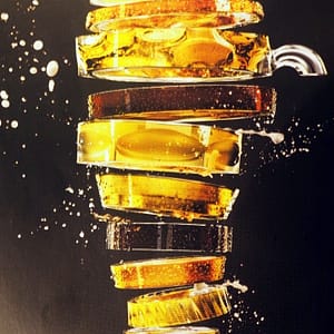 Potom nakupujeme jantár, ktorý sme si pred obedom nechali zmenšiť na K veľkosťa presúvame sa do pivného baru. Chceli sme skúsiť pivo robené z ražného chleba, no na naše veľké sklamanie sa cez noc pokazilo. Pivko (iné) zajedáme koláčom. V skutočnosti to bola miska naplnená zmesou hovädziny, zeleniny a sušených sliviek zakrytá lístkovým cestom a zapečená. Bolo to super, len strašne horúce. My sme prišli pred 17:00, (ale už nás obslúžili… otvárali až o 27 minút neskôr, len vonku FAKT zasa raz pršalo). Neskôr sa obajvila barmanova frajerka a potom už len turisti. Prišiel Číňan, ktorý chcel niečo divné a hlavne nealkoholické. Barman mu veľmi vtipne navrhol, že najdivnejšia nealkoholická tekutina v pivnom bare bude nealko pivo. Azouš si ho teda objednal spolul s hovädzím koláčom. Nasledovali Američania, ktorí sa piati nachpali na minibalkónik a my sme mali konečne kľud od hlučnej amerikánčiny a všetci v bare čakali na rachot rútiaceho sa balkónika. Prišla aj horda Nemcov a kórejská rodinka. To sme to ale už zabalili, lebo sme mali pred sebou ešte triezvenie, nákupy a cestu do Poľska.