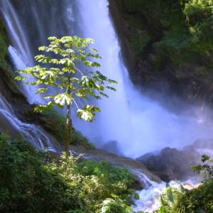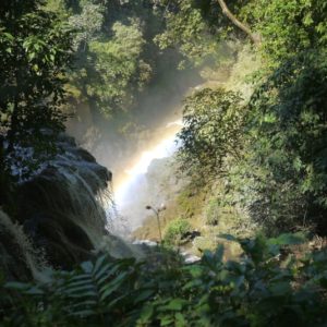 Cesta na vodopád je dlhšia ako dlhá, šľapeme rozhorúčenou cestou, minieme odbočku, ale duchaplný domáci nás odhalí a navráti na správnu cestu. Vodopád je v komplexe, moc sme neni nadšení, že za to vyberajú vstupné. Po prechádzke k nemu sa kúpeme nad samotným vodopádom. Nakoniec si hádžeme micu, či ísť alebo neísť za vodopád, nakoniec padá ísť domov.